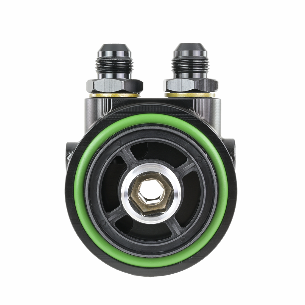 Адаптер позволяет установить внешний масляный радиатор и дополнительные датчики температуры и давления. Он оснащен двумя выходами масла AN8 и двумя портами 1/8 NPT для установки датчиков.