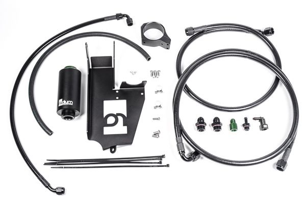 В комплекты сантехники входит все необходимое для прямого подключения к топливной рампе вторичного рынка (-8AN «папа») и FPR (-6AN «папа») как для конфигураций с одним, так и с двумя насосами. Сюда входит предварительно изготовленная линия подачи из ПТФЭ-8AN от подвески до моторного отсека, а комплект повторно использует заводскую линию подачи в качестве обратной линии регулятора.