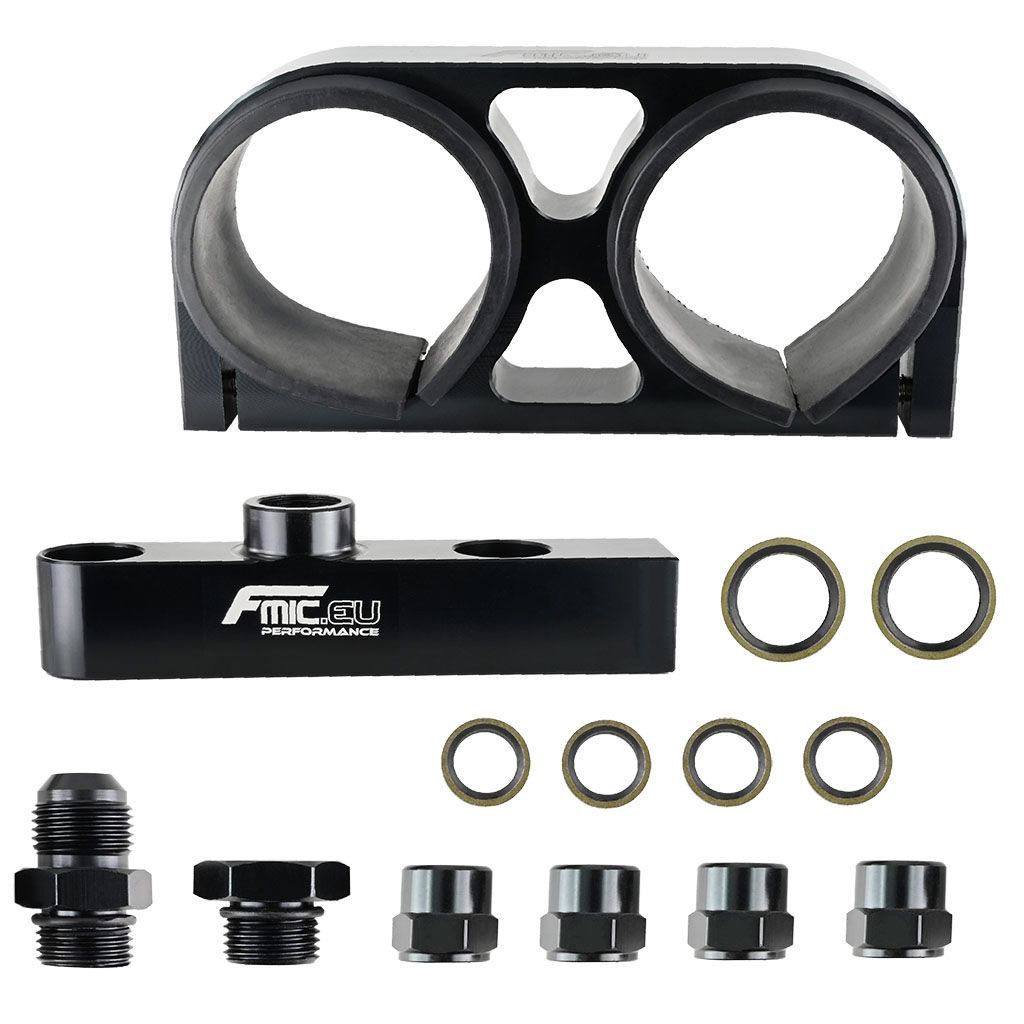 Крепление сдвоенного топливного насоса FMIC.EU с топливной рампой позволяет использовать один или оба насоса одновременно. Топливная рампа имеет боковой или передний выпуск. Изготовлен из анодированного алюминия и точно обработан на станке с ЧПУ, что обеспечивает безопасную, герметичную установку и надежную работу. В комплект входят все необходимые фитинги, уплотнители и антивибрационные шайбы. Совместим с оригинальными обратными клапанами. Совместим с насосами типа 044 производства FMIC.Pro, Bosch и AEM.