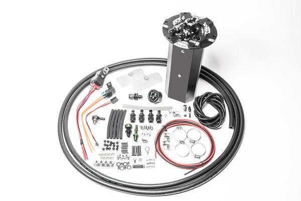 Полный комплект включает все детали, необходимые для завершения установки, включая манометр, внешний топливный шланг, фитинги, электрический предохранитель, реле и т. д. Пользователь должен приобретать топливные насосы отдельно.