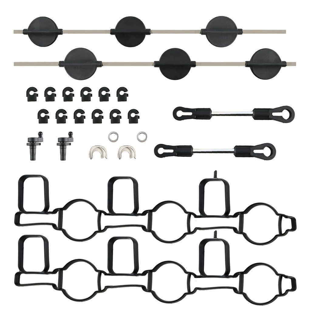 Ремкомплект вихревой заслонки впускного коллектора; улучшенная конструкция предотвращает заедание и проскальзывание рычажного механизма. В комплект входят закрылки, тяги, направляющие и прокладки.